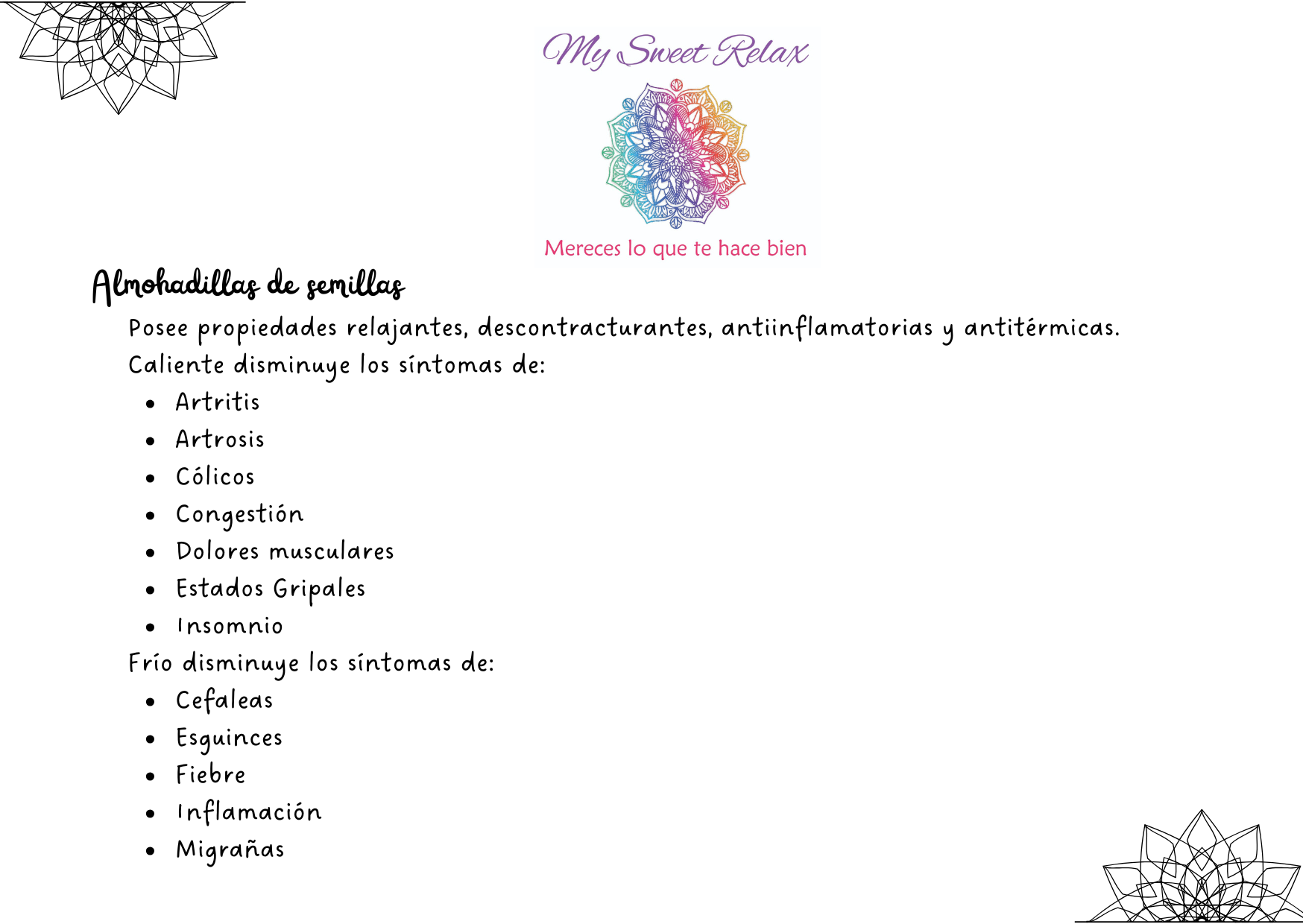 Almohadillas rellenas de semillas de Lino y Lavanda.